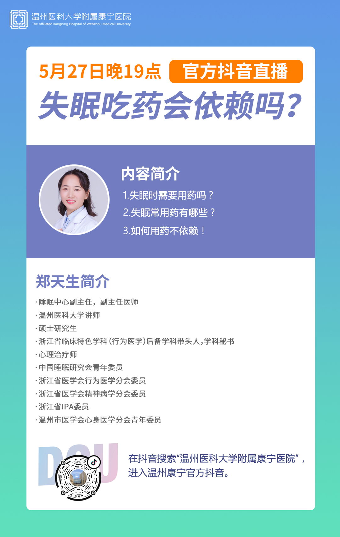 如果还想了解更多睡眠知识,别错过5月27日晚19点的抖音直播,让“天生好眠”助你好眠。